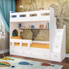 Двухъярусная кровать «Юниор 1» от ЯРОФФ, представленная в каталоге детской многофункциональной мебели, станет отличным решением при обустройстве комнаты ребенка, а также его стильным и ярким, оригинальным дополнением. Двухъярусная кровать-чердак «Юниор 1» выполнена в сочных оттенках, при этом вы легко можете выбрать наиболее подходящую расцветку каркаса и фасада, которая оптимально впишется в ваш интерьер и будет соответствовать пожеланиям как родителей, так и хозяина комнаты. У кровати два спальных места, на втором этаже имеется бортик для безопасности. Выкатные ящики под спальным местом на нижнем ярусе и в лестнице позволяют разместить все необходимые вещи и поддерживать порядок в комнате.