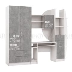 Стенка Юниор-2 Лофт ЛДСП (Бетон светлый/белый)