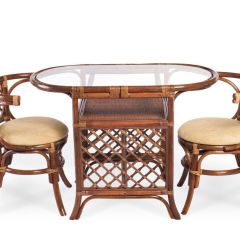 Комплект из ротанга: два кресла и узкий кофейный столик.